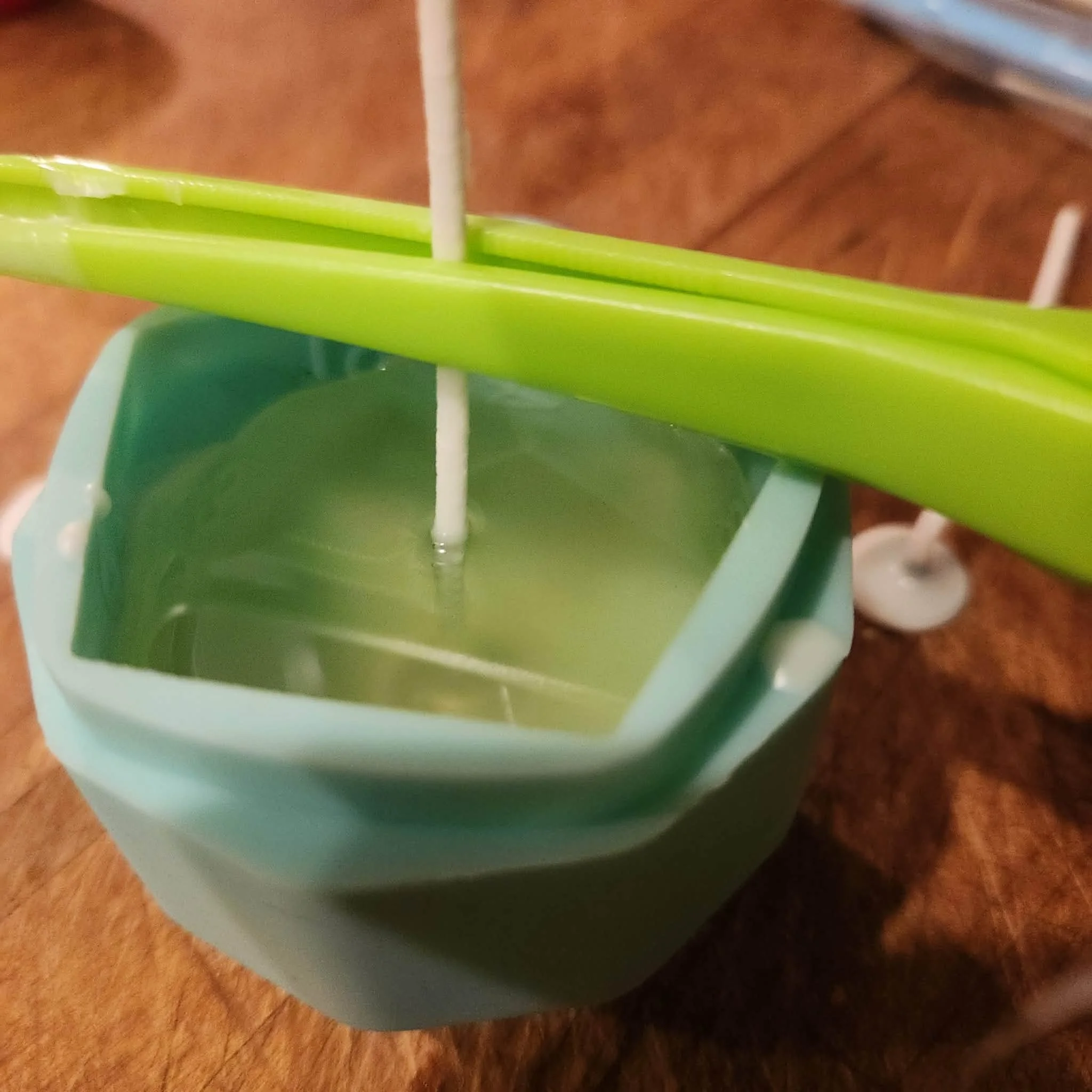 The wax melts fast and cools fast. If it cools against your pot before you’re finished pouring, remelt.